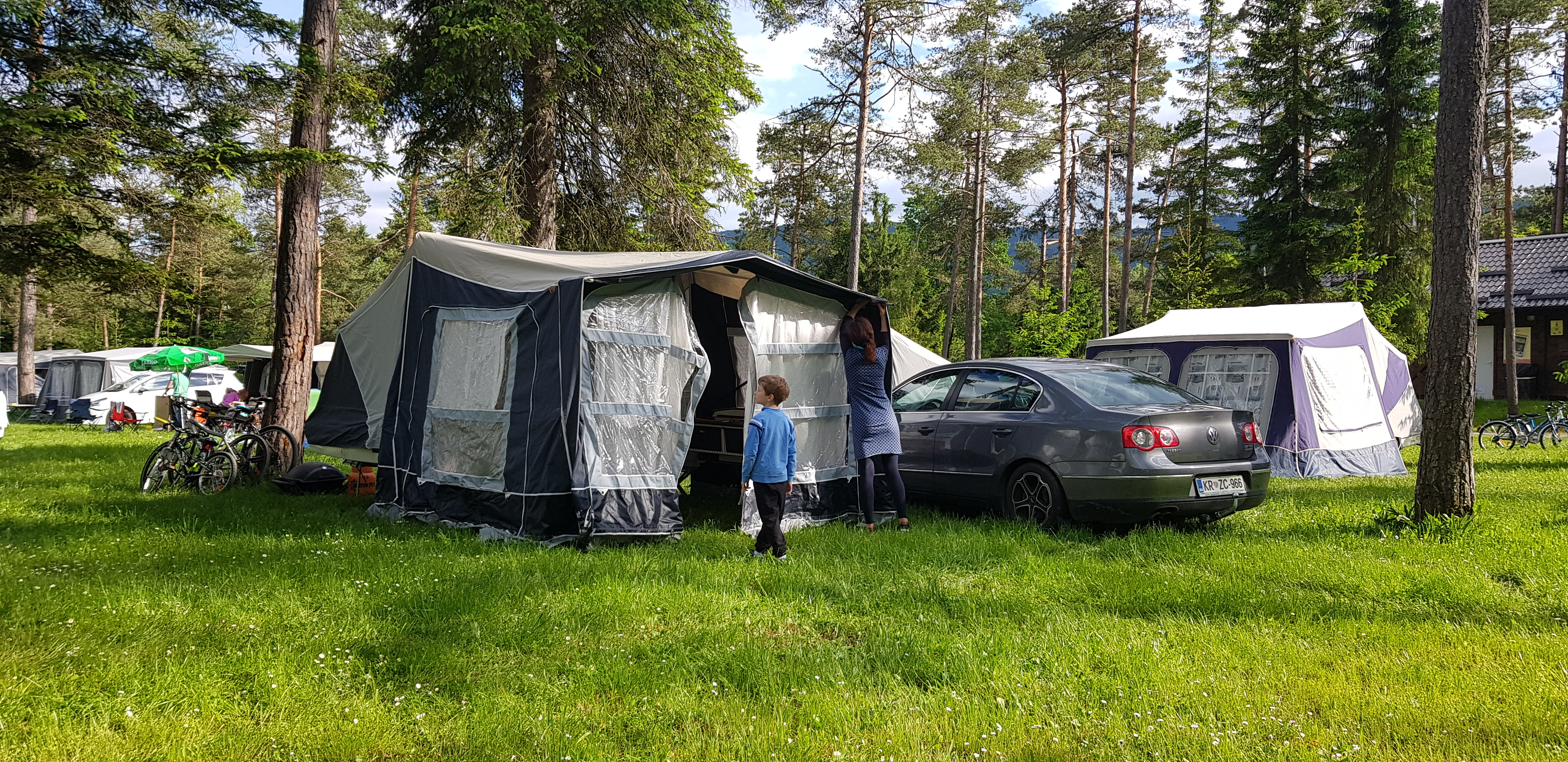 Manj kot ura in pol in je postavljena. Tako kot mora biti. Oblačila zložena, kava se že kuha, skratka kot da smo že nekaj ur v kampu.