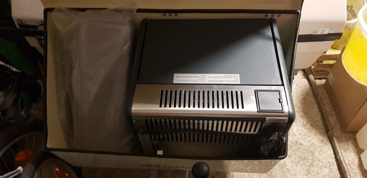 Prikolica je postavljena v mero v waservago. Notri sta dve omarici, od katerih je ena namenjena oblačilom, druga hrani. Notri je lično pozicioniran box našega psa. Voda na baterijsko črpalko dobro teče. Kovčki so skriti in ne motijo pod prikolico. Tudi »truga« je pospravljena na/v svoj prostor in nikogar in ne moti.