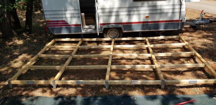 Sledi postavljanje baldahina in potem še podna. Ker smo bili seveda v visokem poletju in ker smo si želeli gratis savne, sem se žrtvoval, da sem sestavil poden. Moja čudovita življenjska spremljevalka je prilivala olje na že tako razžarjen ogenj, češ da ne postavljam pravilno plat. Seveda sem imel OSB plošče ustrezno oštevilčene, da ne bi vsakič odkrival tople vode… In je sledil vsaj že tretji kreg. Tistega drugega nisem omenjal, ker se je zgodil pri postavljanju baldahina. Ker moja košutka nikakor ne razume, da jaz postavljam ta k…. baldahin že leta in da je vsakič pomembno, da se upošteva mene, ki imam izkušenj v letih in ne njo, ki se je začela spoznavati s kampiranjem od trenutka, ko je spoznala mene. Ko smo upoštevali njena merila in priporočila ter mojo vztrajnost je baldahin stal. Stal je trdno in strumno. Stal je napeto, da ga ne more zrušiti noben vihar. Ker to bereta tudi moji regljački ne navajam strumnosti stanja baldahina s pravilnim izrazoslovjem, ampak starejši bodo že vedeli, kaj sem mislil.