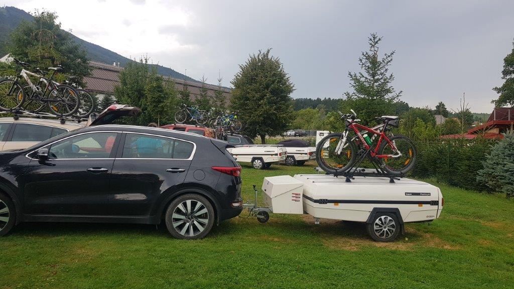Do Maribora je pot minila mirno in brez težav. Postavitev našega Hotela na Kljuki je šla izredno hitro. Naša družina je bila uigrana. Mlajša je skrbela za psa, da ni delal težav naokoli. Ta večja je že odlična pomoč pri sestavljanju prikolice. Prikolica je tako hitro postavljena. Zdaj praznujemo že drugi vikend z manj kompliciranja. Ne uporabljamo več tepihov za vsak vikend. Tokrat smo bili celo brez zaščite (delovnega polivinila) pred šotorom. Kar nisem mogel verjet. Tudi vseh klinov tokrat ni bilo potrebno zabiti.